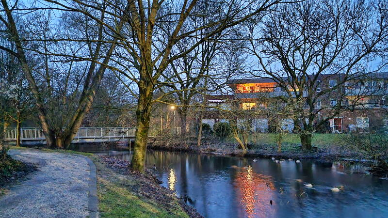 Erstes Highlight, nachdem mich mein Schatz in Neukirchen-Vluyn abgesetzt hatte, war der "Große Parsick". Ein malerischer See, der Teil einer verlandeten Altstromrinne des Rheins ist. Als dann plötzlich ein Schild auftauchte, das den weiteren Weg als "Privatgrundstück" kennzeichnete, erklärte mir dort aber gleich eine freundliche Passantin, dass das nichts bedeute und der Weg "ohnehin von jedem benutzt würde". So wich meine anfängliche Skepsis.