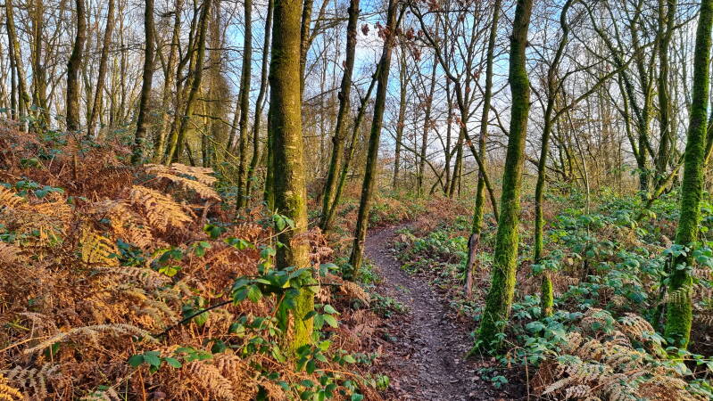 Nach der bis hierher offenen Landschaft und den zahlreichen Weitblicken kommt man sich nun erst einmal vor wie in einer anderen Welt. Besonders den kleinen urigen Pfad im südöstlichen Teil des Waldes sollte man sich nicht entgehen lassen.