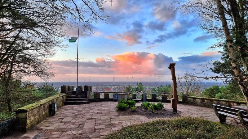Nachdem wir am "Nassen Dreieck" gestartet waren, empfing uns gleich ein ruhiger Waldweg, der mehrere Gedenksteine und eine kleine Kapelle passiert und mit der "Schönen Aussicht" schon bald die erste beeindruckende Aussichtsstelle erreicht: Vorne das beschauliche Riesenbeck, erstreckt sich dahinter das riesige Münsterland.