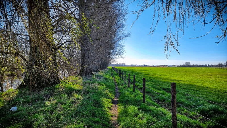 Hier auf freiem Feld darf man es nicht verpassen, schon bald links abzubiegen, denn der kleine Pfad zwischen zwei Äckern, der unmittelbar zurück zur Rur führt, ist leicht zu übersehen. Dafür folgen nun, kaum dass man zurück nach Deutschland kommt, wieder herrliche kleine Trampelpfade direkt am Fluss entlang. Für mich ist dies einer der schönsten Abschnitte der gesamten Tour.