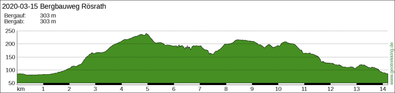Mit dem Rösrather Bergbauweg haben wir uns heute erstmals für einen der insgesamt 24 "Bergischen Streifzüge" entschieden. Er startet im Ortsteil Hoffnungsthal und folgt zunächst für einen knappen Kilometer der Sülz. Über den Rothenbacher Weg geht es danach leicht aber stetig bergauf und schließlich aus dem Ort heraus. Im Wald, ab der Waschkaue, wartet dann ein wurzelreicher und teilweise auch steiler Pfad.