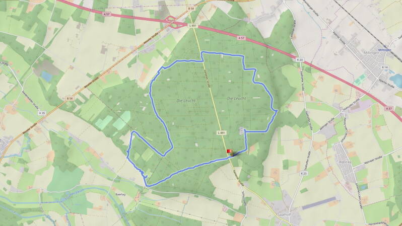 Heute habe ich eine gemütliche, 13 km lange Runde durch die "Leucht" gedreht. Einem Waldgebiet, das sich mit seinen 12.000 ha nördlich von Kamp-Lintfort erstreckt. Am südlichen Rand des Waldes befinden sich an der Xantener Straße zwei große Wanderparkplätze.