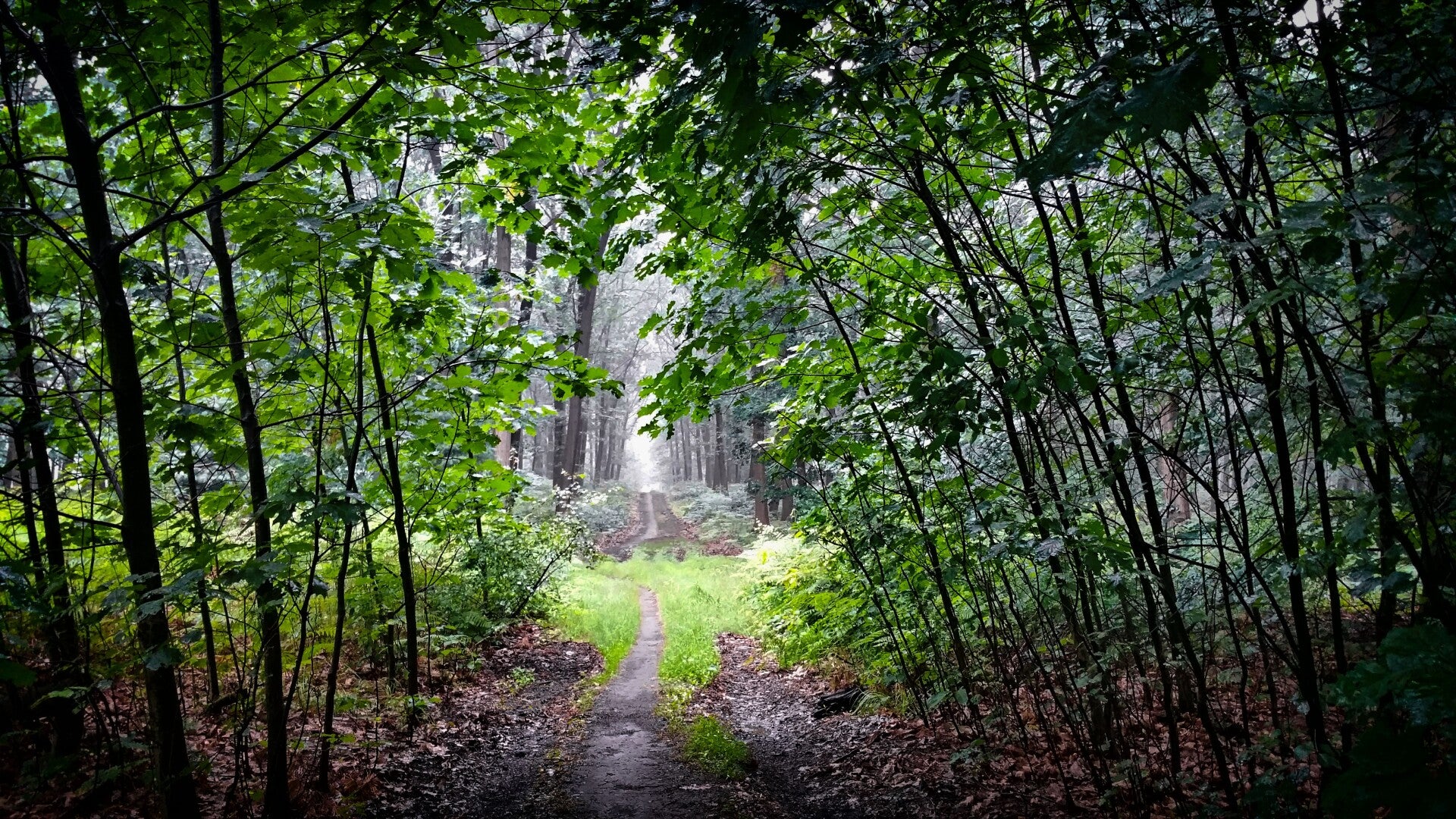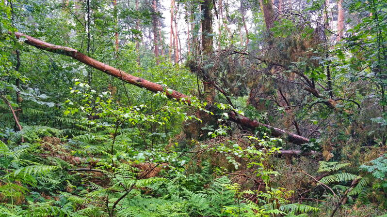Geradezu ein tropischer Regenwald erwartete mich heute früh in der Haard. Die sintflutartigen Regenfälle der Nacht hatten rechtzeitig aufgehört, aber die Temperatur war kaum unter 20 Grad gesunken. So fielen von dem Blätterdach über mir unentwegt warme Wassertropfen herab, und der Dunst sorgte für eine geheimnisvoll unheimliche Stimmung.