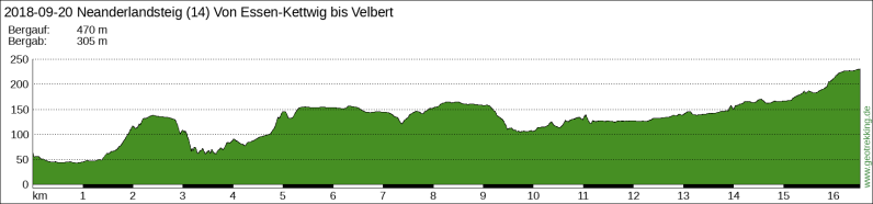 So erreichte ich schließlich Velbert. Die A 44 unterquert, noch mal ein kurzes aber sehr steiles Wegstück bewältigt, und ich hatte mein heutiges Ziel in Velbert-Unterstadt erreicht, das etwa 180 Meter höher lag als mein Ausgangspunkt. Nun noch drei Etappen, bis der Kreis sich in Neviges schließt.