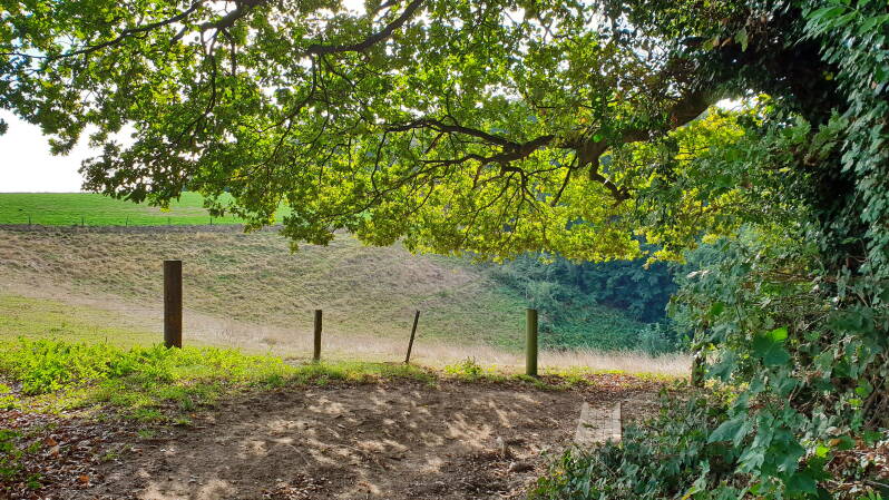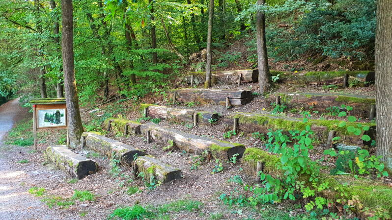 Das Höhenprofil der 16 Kilometer langen Strecke war im Vergleich zu den meisten anderen Etappen anspruchsvoller. Direkt hinter dem Startpunkt an der Bahnunterführung der S-Bahn-Linie 6 in Kettwig begann mit dem Klippenweg schon der erste steile Anstieg. Das Überqueren der Charlottenhofstraße (K4) stellte dann aus meiner Sicht einer der gefährlichsten Punkte der gesamten Strecke dar, handelte es sich doch sowohl für Autofahrer als auch für Wanderer um einen äußerst schlecht einsehbaren Bereich. Nachdem ich dann das Gelände der Rhein-Ruhr-Klinik hinter mich gelassen hatte, folgte schon bald das nächste Waldstück, in dem es erneut steil auf und ab ging. Hierdurch ergaben sich aber auch schöne Ausblicke hinunter auf Kettwig und die Ruhr.