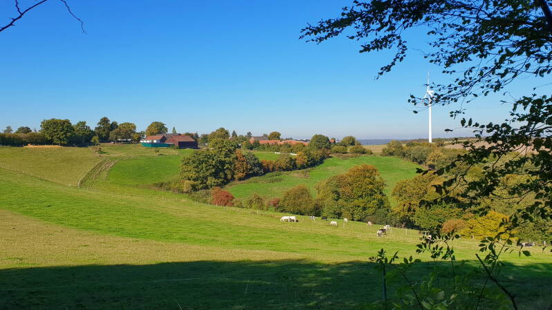 Hinter der Gemeinde Hopscheiderberg führte der Weg die letzten zwei Kilometer entspannt und erneut durch ein schönes Waldgebiet bergab. Am Ende wartete im Tal Velbert-Nierenhof, das Ziel meiner heutigen Wanderung. 15 teils recht sportliche Kilometer bei wunderbarem Herbstwetter. Und Neviges als das finale Ziel meiner Neanderlandsteig-Runde ist auch schon beschildert. Aber bis dorthin sind es noch zwei Etappen.