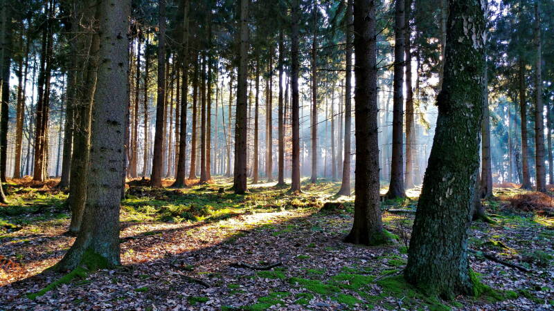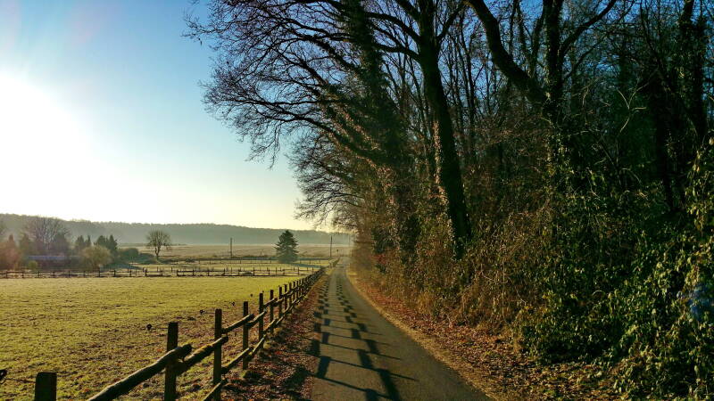 Begonnen habe ich heute mit einer Rundwanderung durch den "Birgeler Urwald" westlich von Wildenrath. Die gewählte Route entspricht einem offiziellen Wanderweg von etwa 15 km, dem ich am Parkplatz "Haus Wildenrath" gegen den Uhrzeigersinn gefolgt bin. Der Weg ist aber in beide Laufrichtungen sehr gut ausgeschildert und hält, was sein Name verspricht. Auch Teile des Naturschutzgebietes "Helpensteinerbachtal, Schaagbachtal, Petersholz" werden durchquert.