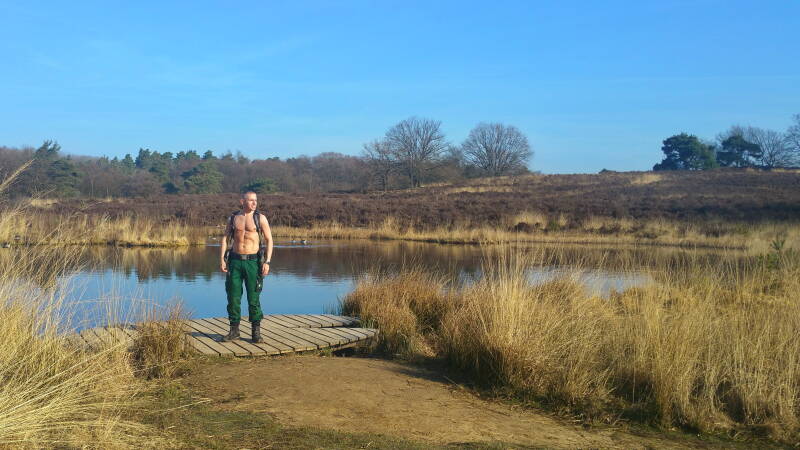 Das weitläufige Heidegebiet in den Niederlanden war faszinierend und mal wieder etwas völlig anderes. Nach 7 km machte ich eine erste kleine Pause am Rolvennen, wo viele Wasservögel zu beobachten waren. Der sandreiche Boden reflektierte das Sonnenlicht und sorgte für ein ständiges Wechselspiel zwischen kühler Luft und leicht aufsteigender Wärme. Unter dem Strich reichte es aber, mich erstmals in diesem Jahr wieder meines T-Shirts zu entledigen.