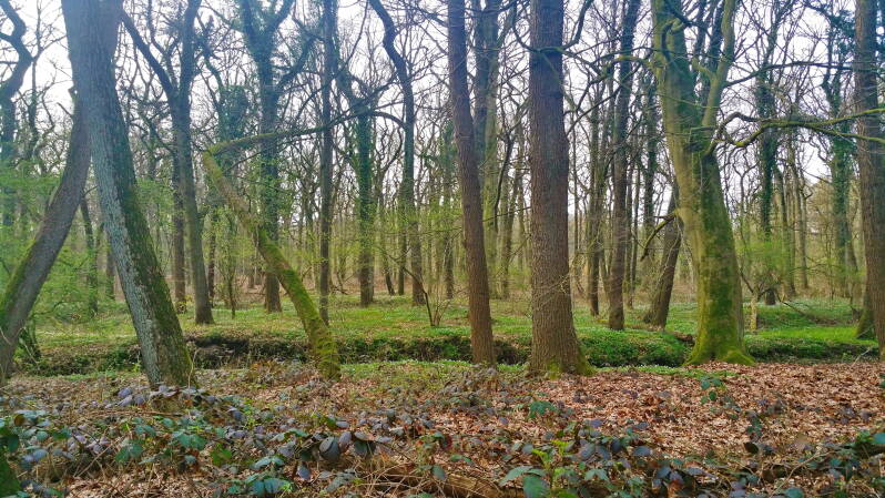 Der weitere Verlauf, so mein Plan, sollte mich durch die Haard wieder zurückführen. Um von hier aus in meinen Lieblingswald zu gelangen, ließ es sich aber nicht vermeiden, eine Weile über asphaltierte Wege zu marschieren. Über den Haardgrenzweg und in Sichtweite an Mutter Wehner vorbei kam ich schließlich in die Haard hinein, wo ich nach unzähligen Wanderungen zuvor auch heute wieder neue Wege entdeckte.