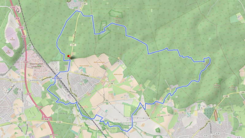 Am Feuerwachturm auf dem Farnberg rastete ich, nachdem ich bis hierher gut die Hälfte meiner Strecke zurückgelegt hatte. Über den Brinksknapp-Weiher und einen weiteren nördlichen Schlenker gelangte ich schließlich zurück zum Parkplatz "Forsthaus Haidberg", wo ich meinen Wagen abgestellt hatte.