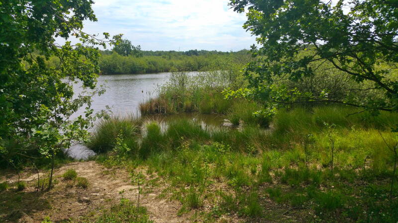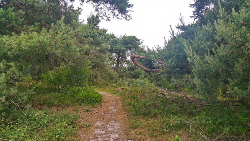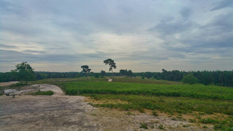 Bei der letzten Etappe durch die "Maasduinen" hatte ich es heute mit deutlich wechselhafterem Wetter zu tun. Immer wieder kamen kurze Schauer herunter, so dass ich trotz der nach wie vor milden Temperaturen mein Regenzeug überwiegend anbehielt. Gerade im Sommer ein sehr ungewohntes Gefühl für mich. Aber zumindest gegen Mittag konnte ich meine überflüssigen Klamotten dann doch mal für eine halbe Stunde in den Rucksack packen.