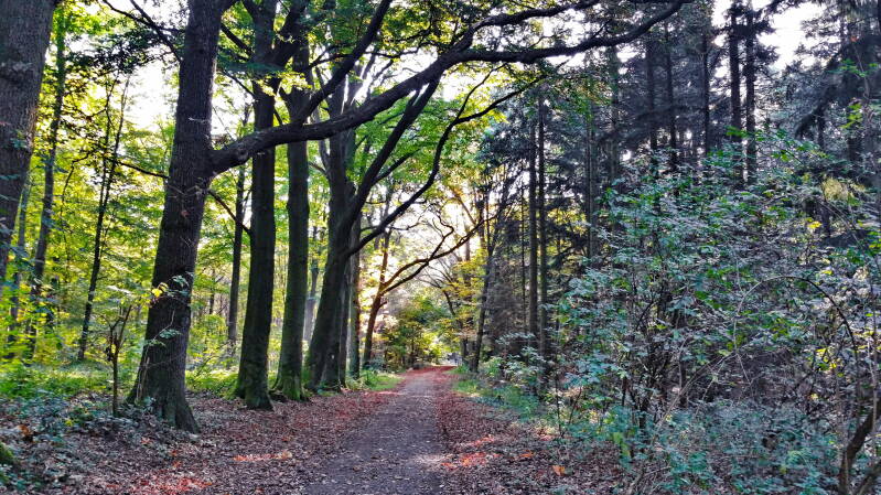 Durch den Viersener Ortsteil Dornbusch gelangte ich dann auf den Windberg, wo die Süchtelner Höhen enden. Hier wechselte ich die Richtung und folgte dem eigentlichen Höhenweg zurück, der mich über den Dornbuscher Weg, durch den Erbenwald und schließlich am Kreiskriegerdenkmal vorbei führte (dort, wo ich als Kind schon Kastanien gesammelt habe), bis an den Ortsrand von Süchteln.