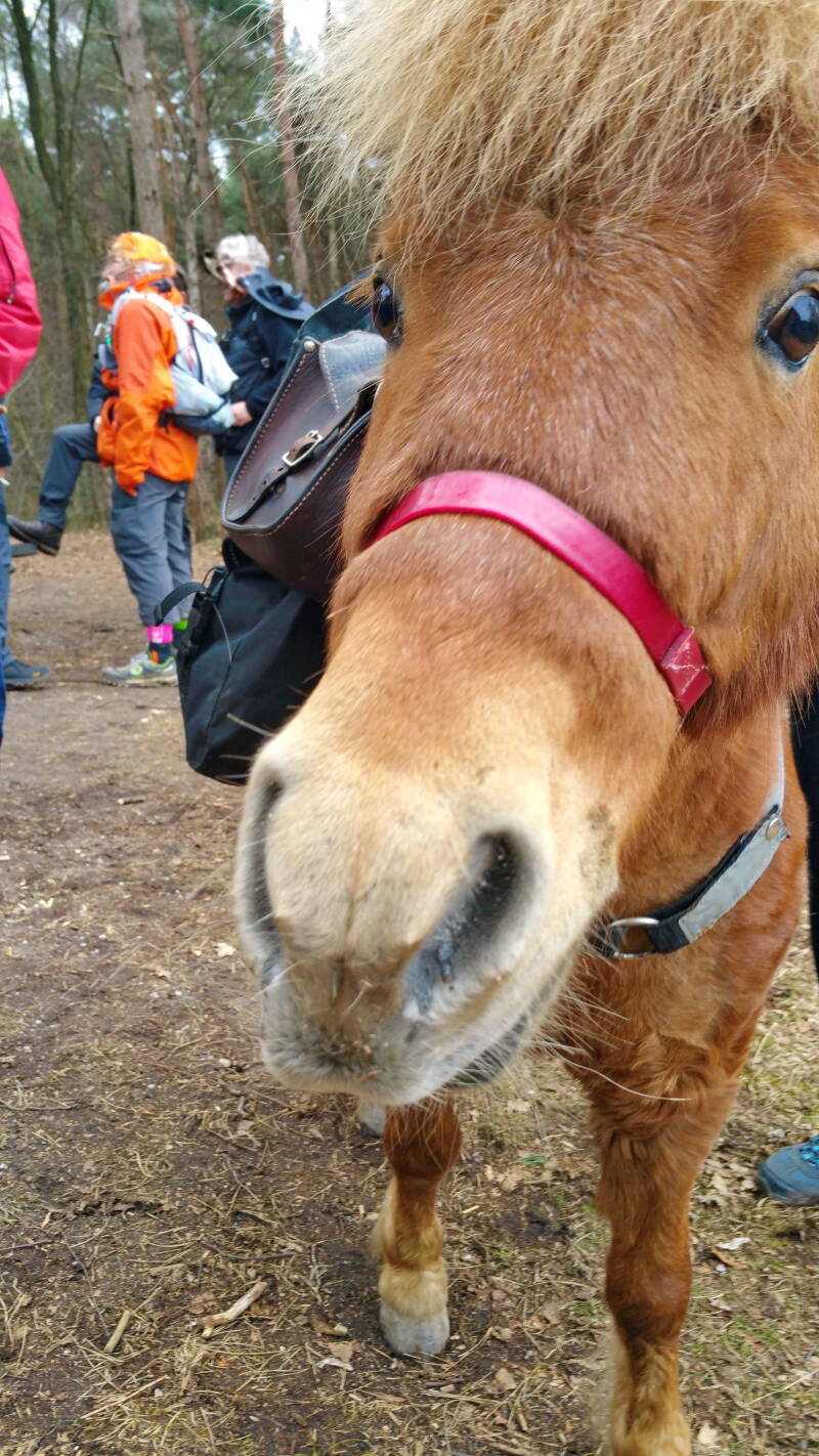 Eine schöne Rundwanderung führte uns heute erstmals mit einer Wandergruppe von "Freizeit Wandern NRW" durch das Galgenvenn an der Niederländischen Grenze bei Kaldenkirchen. Der Star unserer Gruppe aber war Netis, das süße Shetlandpony.