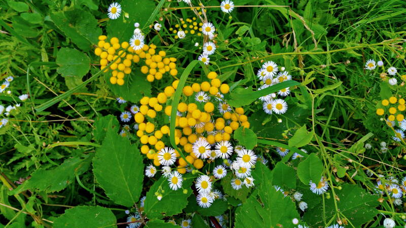 Neben einigen Kuriositäten, die mir vor die Linse kamen, muss ich als Highlight jedoch besonders das nördlich des Rennbergs gelegene Gebiet hervorheben, das dank des überall hochgewachsenen Farns fast den Charakter eines Dschungels hatte. Einer meiner geplanten Wege war daher gar nicht passierbar, bei einem anderen gelang es mir aber, mich kühn durch das wuchernde Gestrüpp zu kämpfen. Gleich rechts des Weges befand sich zudem ein steiler Abhang. Die Aussicht, die sich mir dadurch bot, entschädigte aber mehr als genug für die Mühe, die mit diesem Teilstück verbunden war.