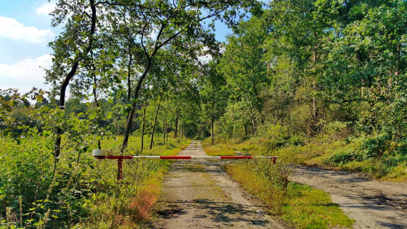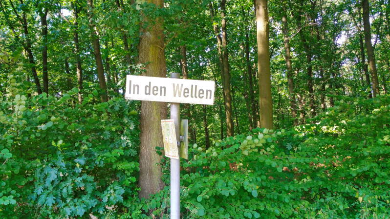 Nachdem ich ein geheimnisvolles und militärisch wirkendes Areal passiert hatte, auf das ich mir keinen Reim machen konnte, kam ich über freies Gelände am Wanderparkplatz "Katenkreuz" vorbei und tauchte wenig später, immer dem Weg "In den Wellen" folgend, wieder in den Wald ein.