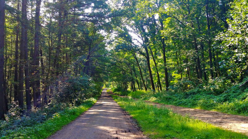 Wieder zurück auf der angenehmeren, weil dank des Waldes schattigen Südseite, war es nicht mehr weit bis zur Ahsener Allee. Hier verließ ich den Kanal und folgte durch wieder waldreicheres Gebiet dem Ostlevener Weg, bis ich über den Heidgartenweg die Balkenschlenke erreichte.