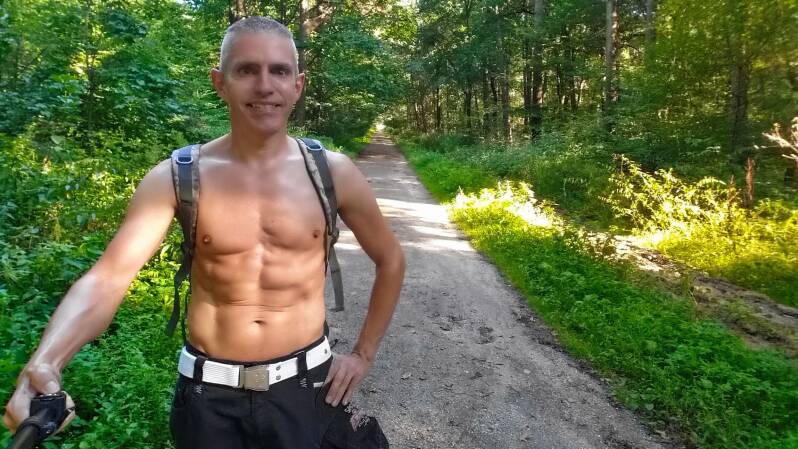 Als Startpunkt wählte ich den Wanderparkplatz "Forsthaus Haidberg". Angesichts der vor mir liegenden 34 Kilometer entschied ich mich aber nur für leichtes Gepäck und packte lediglich Wasser und Proviant in den Rucksack. Selbst mein einziges T-Shirt ließ ich nach kurzer Überlegung dank des superschönen Spätsommerwetters im Wagen zurück.