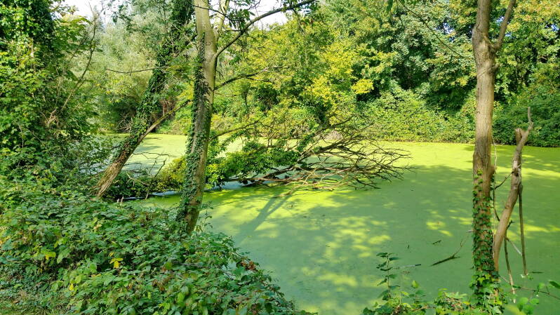 Hinter Haus Scheppen wechselte ich dann erneut in den Wald, wobei sich der Pfad aber als Reitweg entpuppte. Danach kam schon bald das Stauwehr von Werden in Sicht.