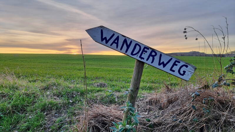 Im neuen Ortszentrum von Gruiten orientiert sich der Weg meist an den Bahngleisen, bis er, wieder im Ländlichen, irgendwann rechts abbiegt. Kurz darauf muss man aufpassen, denn der vom Asphaltweg nach links abgehende Pfad, auf dem sich der "Bergische Weg" fortsetzt, ist aktuell nicht markiert. Wer den übersieht, wandert von hier aus unweigerlich in die falsche Richtung.