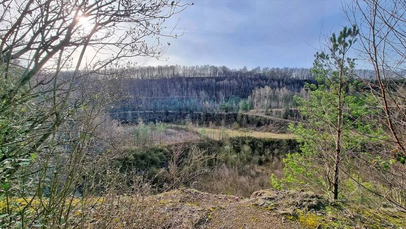 Darüber tröstet aber schon bald die beeindruckende Kulisse von "Grube 7" hinweg: Einem ehemaligen Kalksteinbruch, der heute ein Naturschutzgebiet ist. Der gesicherte Weg führt in Höhe der Abbruchkante um die gewaltige Grube herum, in der sich seit ihrer Stilllegung zahlreiche Tier- und Pflanzenarten angesiedelt haben.