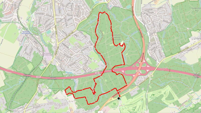 Dennoch: die allermeisten Wege in dem leicht hügeligen Gelände sind breit und gut begehbar. Nur die permanente Geräuschkulisse der A 45 und der B 54, die sich in unmittelbarer Nähe kreuzen, blieb ein kleiner Wermutstropfen.