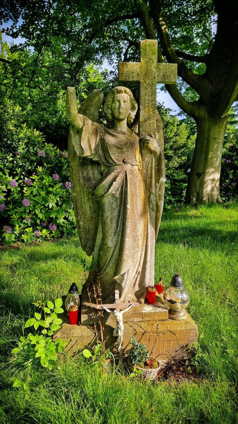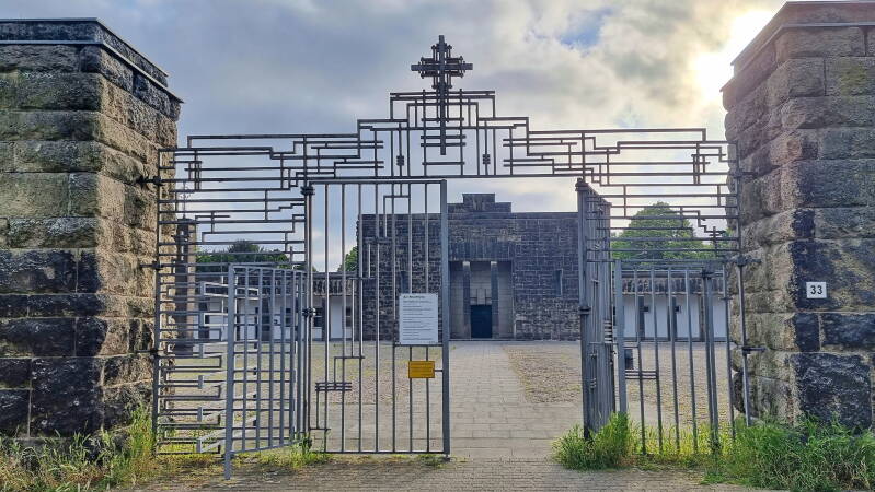 Wir dagegen hatten unseren Weg zu dieser frühen Stunde noch unbehelligt fortsetzen können. Erst durch das Siepental, dann durch die Schrebergärten der "Heinrich-Topp-Anlage". Schließlich erreichten wir den Westeingang des Huttroper Parkfriedhofs. Auf dieser größten zusammenhängenden Friedhofsfläche in Essen ist übrigens auch das Ehrengrab von Gustav Heinemann zu finden, der von 1946 bis 1949 Oberbürgermeister von Essen und von 1969 bis 1974 Bundespräsident war.