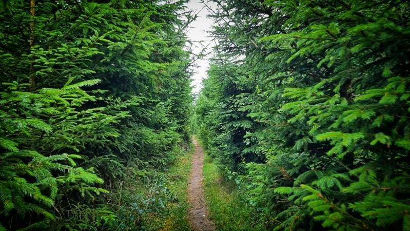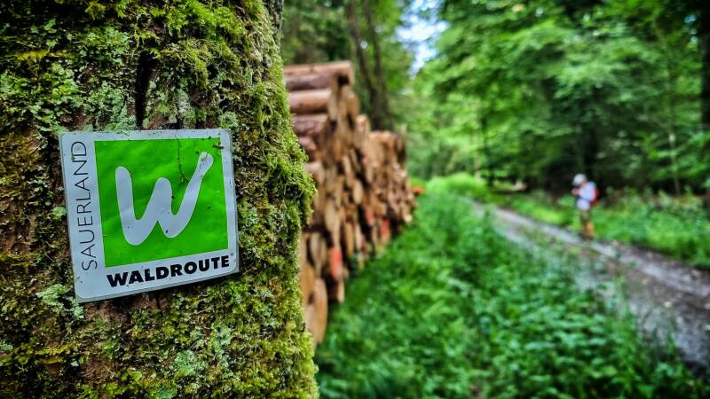 An der "Grünen Hoffnung", so der Name einer ehemaligen Bleierzgrube, wird aus dem Schotterweg ein Wurzelpfad, der kurz vor Breitenbruch auf die B 229 mündet. Mangels Alternativen führt die Route hier ein Stück an der Hauptstraße entlang. Einen Kilometer weiter nahm uns der Wald wieder auf, zunächst erneut über einen breiten Schotterweg, bevor wir mit dem "Plackweg" auch hier auf einen kleineren Pfad zurück wechseln konnten.