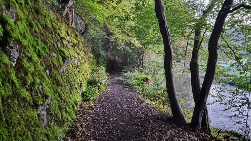 So begann - noch vor Sonnenaufgang - dieser tolle Wandertag im idyllischen Tal der Hönne, das gerade wieder anfängt, in goldenen Herbstfarben zu leuchten, und wo ein wunderbarer Pfad (mal über Wiesen, mal an vermoosten Felswänden entlang) dem Plätschern eines der malerischsten Sauerländischen Bäche folgt.