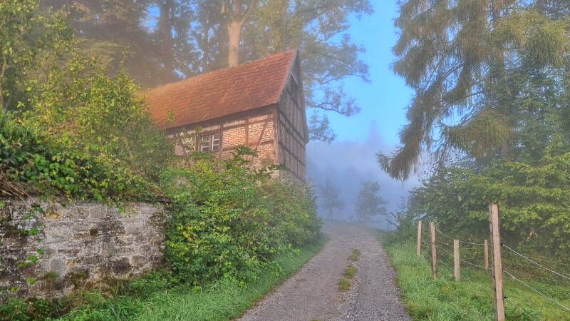 Diese Entspanntheit reicht aber nur bis an den dritten (und sicher brutalsten) Aufstieg dieser Etappe heran. Er zieht sich - gefühlt nicht enden wollend - für etwa zwei Kilometer bis Gut Holmecke hin. Kurz danach tauchen dann sehr willkommene Rastbänke auf. Hier, bei Kilometermarke 20, lassen sich dann die mit Abstand anstrengendsten Passagen abhaken.