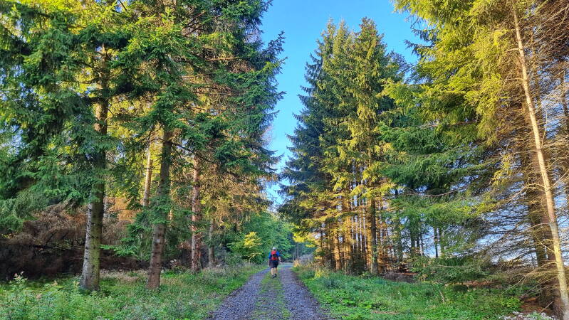 Über den "Hexenstich" führt der Weg nun hinunter ins Tal der Selmke und dann südlich von Stephanopel vorbei. Bis zur Nachbargemeinde Ispei bleiben nennenswerte Höhenmeter aus, um dann, kaum den Ort verlassend, wieder voll zuzuschlagen. Auf diesem bis Frönsberg führenden Abschnitt gab es für mich dann auch ein Wiedersehen mit der "Wolfskuhle", die mittlerweile aber nicht mehr passierbar erscheint. Dafür ist der heutige Weg nach Bredenbruch hinunter sehr entspannend.