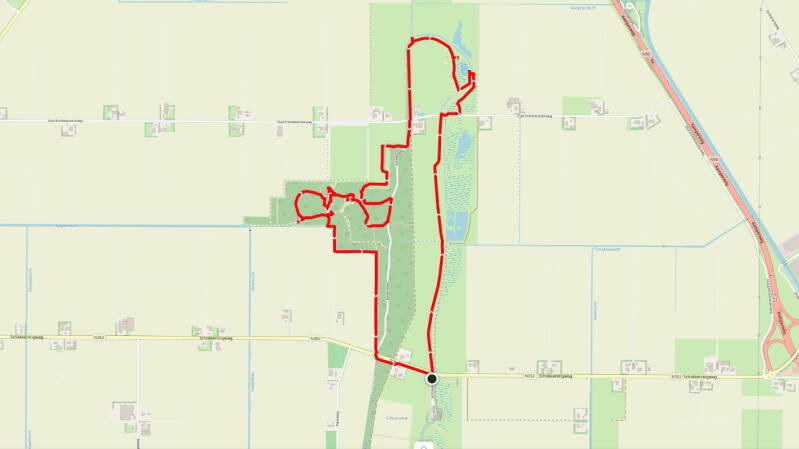 Bald wendet sich die Route leicht nach rechts und folgt wenig später dem Saum des "Schokkerbos", während sich auf der anderen Seite eine tiefgrüne Wiese an die nächste reiht. Nach einer kleinen Extrarunde durch den Wald erreichte ich dann den "Gesteentetuin", in dem aus der Eiszeit stammende Steine zusammengetragen wurden, die heute besichtigt werden können. Ein kleines Informationszentrum gibt es auch, das zum Zeitpunkt, als ich vorbeikam, aber noch geschlossen war.