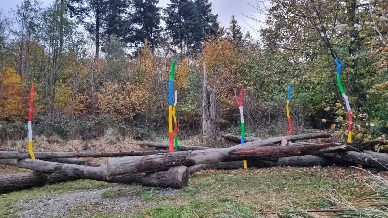 Der südöstlich von Brilon gelegene Parkplatz am "Hängeberg" stellte den perfekten Startpunkt dar, waren es von hier doch nur etwa 200 Meter bis zu jenem Abzweig, an dem wir beim letzten Mal die "Waldroute" verlassen hatten. Und schon an der "Axt im Walde", einer originellen Skulptur, nimmt die Wegführung einen kleinen Schlenker abseits des Hauptweges vor, indem sie einen Teil des sogenannten "Blindenpfades" mitnimmt.