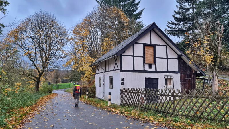Diese ebenfalls recht wild daherkommende Region beeindruckte uns außerordentlich. Und wer nicht zufällig einen Blick auf seine Karte wirft, dürfte kaum mitbekommen, wie er hier exakt auf der Grenze zwischen NRW und Hessen entlang wandelt - um später für knapp zwei Kilometer auch mal komplett ins benachbarte Bundesland zu wechseln.