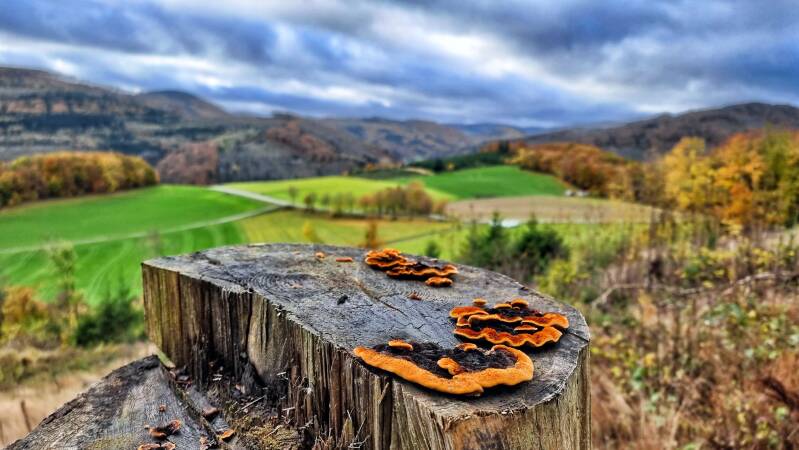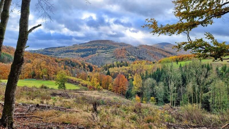 Grün-goldenes Herbstlaub, wohin der Blick fiel. Aber auch ein böiger Wind, der immer wieder tiefhängende Wolken vor sich her trieb: das waren unsere ständigen Begleiter auf der heutigen "Waldrouten"-Etappe, die von Brilon bis an die Staumauer des Diemelsees führte. Ein Teilstück, das so eigentlich nur auf 15 Kilometer gekommen wäre, hätten wir uns am Ende nicht noch auf ein atemberaubendes Zusatz-Abenteuer eingelassen. Doch dazu später mehr.