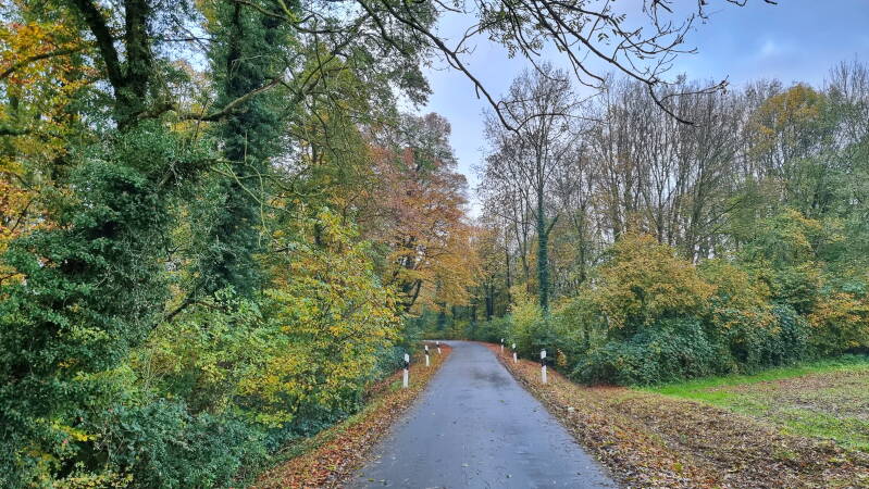 Los ging es am Friedhofsparkplatz von Münster-Nienberge, von wo aus ich gleich mit dem mutmaßlich "unattraktivsten" Teil der Runde, einem zwei Kilometer langen Wirtschaftsweg, startete. Das klingt jetzt deutlich negativer als er wirklich ist, aber letztlich muss ich ihn auch in den direkten Vergleich zu den hochkarätigen Erlebnissen stellen, die später noch folgten.
