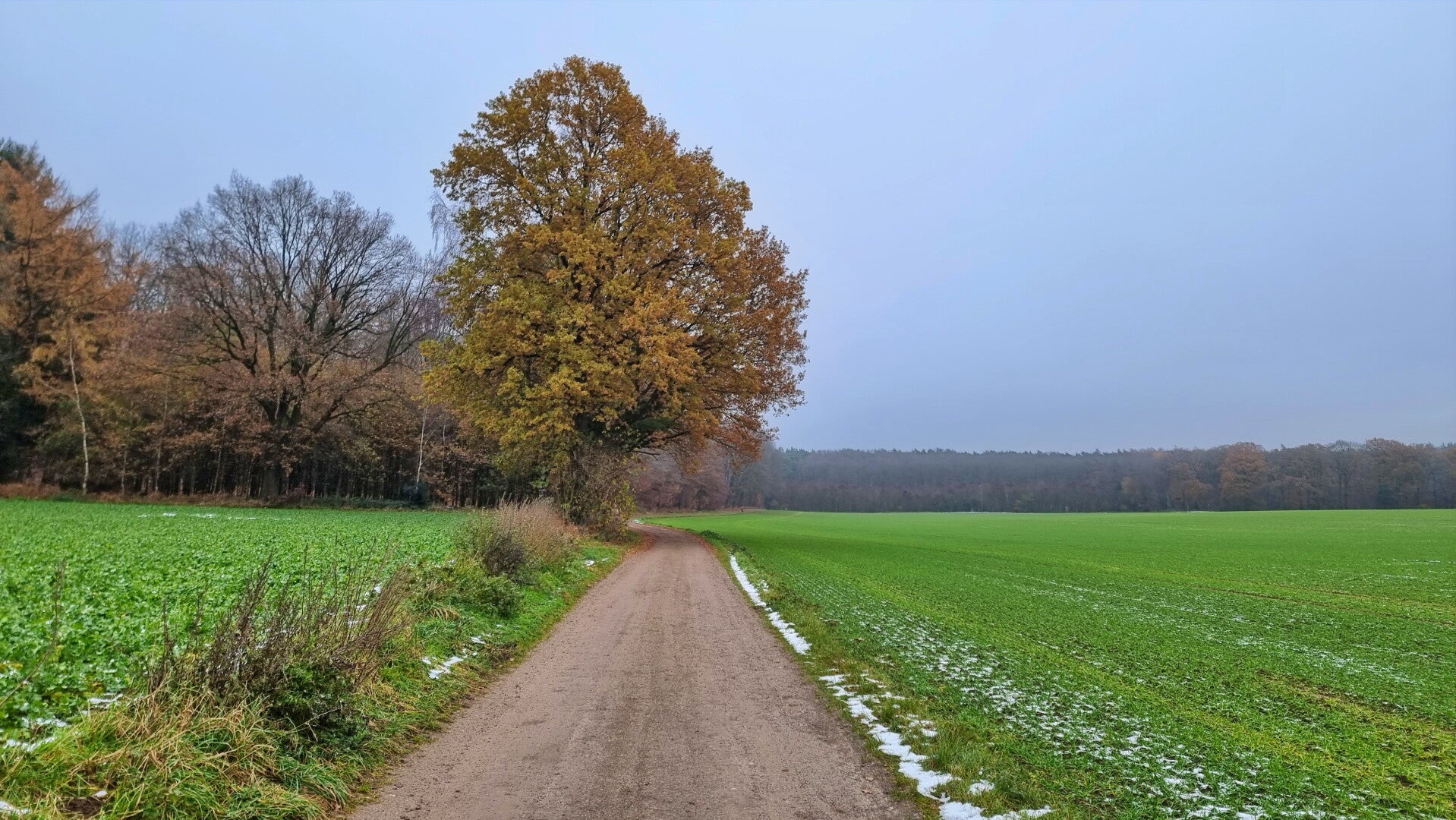 Auf zur zweiten "LandStreifer"-Runde, deren Schauplatz, die westliche "Hohe Mark", sich heute vielerorts weiß gepudert präsentiert hat. Da ich aber mit den Öffis angereist bin und schon am Bahnhof Lembeck startete, dehnte sich meine Strecke (statt der offiziellen zwölf) auf 17 Kilometer aus.