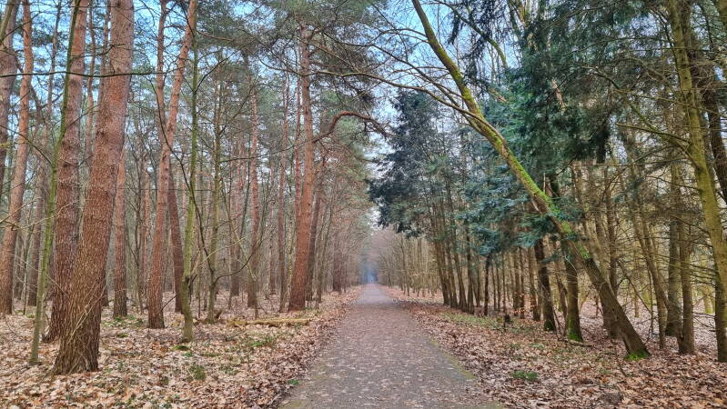 Begibt man sich von hier aus im Uhrzeigersinn auf die Route, läuft man zunächst exakt an der Nahtstelle des Ruhrgebiets (Kreis Recklinghausen, links) und des Münsterlandes (Kreis Coesfeld, rechts) entlang. Anschließend führt der rechts abgehende (und heute glücklicherweise hartgefrorene) Feldweg in Richtung des "Alten Postwegs", auf dem man dann vorübergehend auch auf die "Wasserroute" des "Hohe Mark Steigs" trifft.
