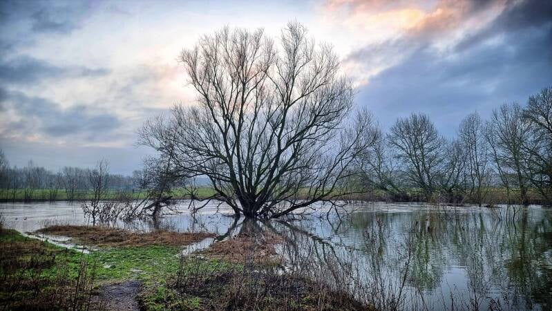 In den drei Wochen, die seit meinem letzten Besuch vergangen sind, ist die Lippe schon wieder mächtig angeschwollen. Umso eindrucksvoller war entsprechend auch der Blick, den man nur wenige Minuten später von einer erhöhten Aussichtsplattform auf den Fluss und seine Auen hat.
