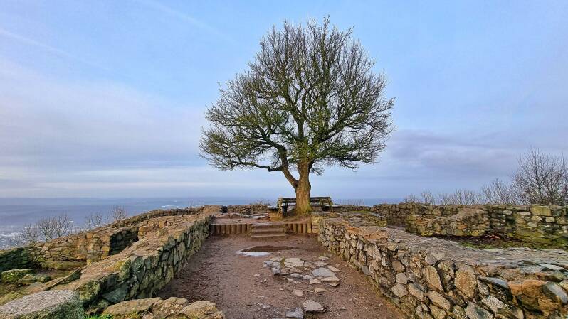 Trotz des relativ weiten Weges, der noch vor mir lag, ließ ich mir den Abstecher auf die Löwenburg nicht nehmen. Sie gehört zwar nicht direkt zur Rheinsteig-Route, aber es wäre unverzeihlich, sie - hier vorbeikommend - einfach liegenzulassen. Es sind einige Höhenmeter extra, doch jeder, der von der Ruine hinunter ins Rheintal blickt, vergisst diese Strapazen sofort. Und ich erinnerte mich daran, zum letzten Mal im September 2017 hier gewesen zu sein, als ich die "Großen Sieben" in einer eigenen Rundwanderung miteinander verband.