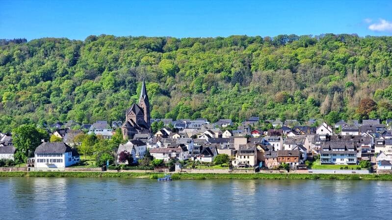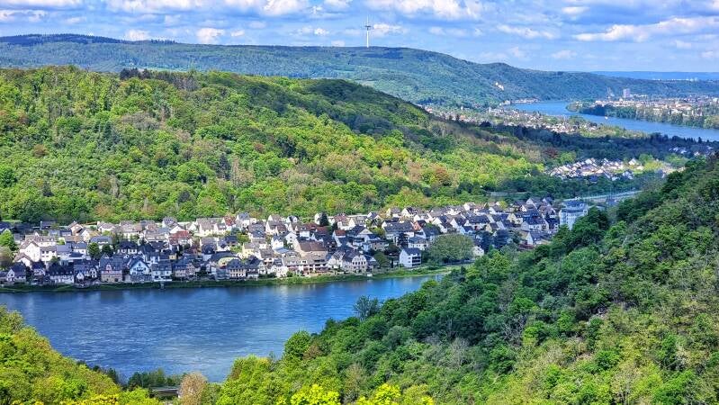 Während die Blicke auf den Rhein nun deutlich seltener werden, bleibt der Waldpfad ein wahres Träumchen. Erst später machen die Bäume sonnigen Obstwiesen Platz. Hier strebt der Weg nun westwärts der "Bopparder Hamm" zu: jener größten und markantesten Schleife, die der Rhein während seines langen Weges von den Alpen bis zur Nordsee beschreibt. Er umfließt dabei auch das Örtchen Filsen, das den Wanderer an dieser Stelle mit der "alten Wachport" empfängt: Einem echten Kuriosum, denn ein mit einem Fachwerkhaus überbauter Torbogen ist architektonisch äußerst selten.