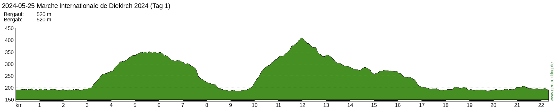 Früher unter dem Namen "Marche de l’armée" vom Luxemburger Militär organisiert, ist aus dem zweitägigen Marsch längst eine Volkswanderung geworden, bei der man die Wahl zwischen einer Tagesstrecke von 40, 20 oder 12 Kilometern hat. Wir blieben Wolfs Tradition treu und stellten uns heute dem ersten Tag der "2 x 20er"-Version, die durch das landschaftlich hochkarätige, aber auch anspruchsvolle und höhenmeterreiche Gelände des Diekircher Umlandes führt.