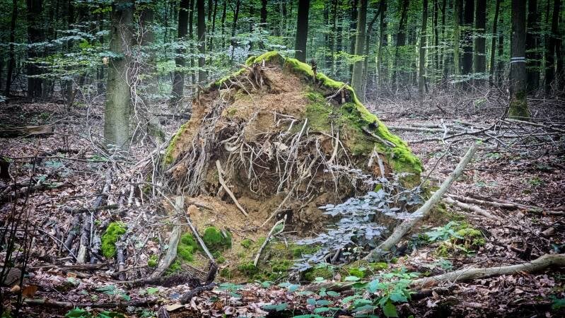 Der erste Teil wurde zunächst von relativ breiten und ausgefahrenen Wegen bestimmt. Dabei war ich mir eigentlich sicher gewesen, auf kleine Pfade zu stoßen, zumal ich die noch von früheren Touren in Erinnerung hatte. Bald aber sahen wir schon die Ursache für den unliebsamen Wandel: Riesige Windräder, die in den vergangenen Jahren aufgebaut wurden, und die Spuren sogenannter "Holzentnahmen", wie diese Gemetzel im Amtsdeutsch heißen, waren auch nicht zu übersehen.
