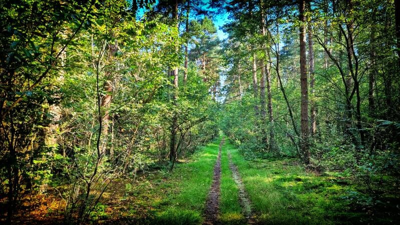 Nach einer Weile trifft man an einer Waldlichtung auf die Route des LandStreifers "Üfter Mark". Einem Teil seines Weges wird nun gefolgt, allerdings ohne die namensgebende Nordrunde durch die Üfter Mark selbst. Aber auch der "neue" Hohe Mark Steig wird sich die Ehre geben, zum Beispiel während man sich auf der "Entenpoete" weiterbewegt.