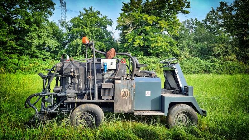 Der nächste Anstieg lässt nicht lange auf sich warten und führt unmittelbar am historischen Kaminsockel der ehemaligen Zeche "Viktoria" vorbei. Bis zum Scheitel der Anhöhe sind es aber noch ein paar anstrengende Schritte. Hier, auf der "Deile", wo auch der Byfanger Wasserturm in Sichtweite gerät, hat man es aber geschafft.