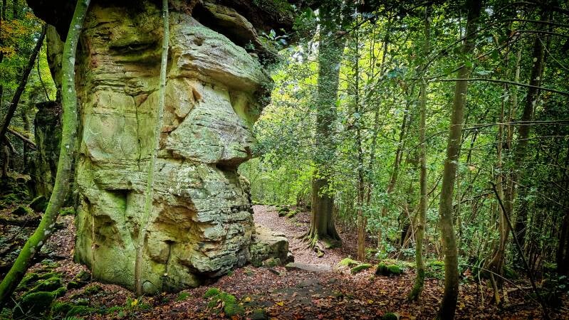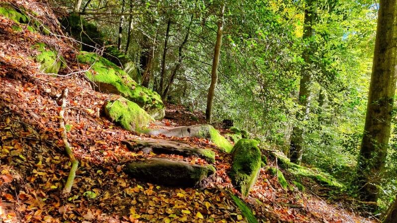 Als Auftakt nahmen wir uns heute den Rundwanderweg 55 durch die "Grüne Hölle" vor. Und ihre bizarren, oft mit Moos überwachsenen Felsformationen dürften sicher auch zu den Indizien ihrer Namensentstehung gehören.