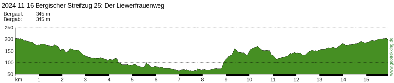 Das bewaldete Weinsberger Bachtal bildet den Übergang zu einer Asphaltpassage, auf der man den Enderskotten und schließlich die Ortschaften Untenfürkelt und Mittelfürkelt passiert. Und es beginnt sich langsam aber sicher wieder die Urbanität Solingens bemerkbar zu machen.