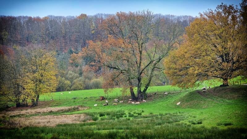 Während der erste und letzte Kilometer städtisch geprägt ist, kann man sich dazwischen den wunderbaren Gefilden des Bergischen Landes hingeben. Dabei wechseln sich kleine Wiesenpfade immer wieder mit idyllischen Waldwegen ab. Und während das Herbstlaub derzeit in all seinen Farben leuchtet, plätschert eine ganze Zeit der Pilghauser Bach neben dem Wanderweg her.