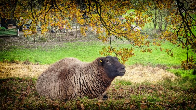 Ab hier führt ein Wiesenpfad dann zunächst wieder leicht abwärts in ein Waldgebiet, das vom Hintenmeiswinkler Bach durchflossen wird. Aber schon macht sich die nächste, doch deutlich moderatere Steigung bemerkbar. Ein Feldweg führt bis zur Widderter Straße und wendet sich dann dem Örtchen Lache zu, wo neben einem Rastplatz auch die überlebensgroße und aus Holz geschaffene Figur einer Liewerfrau bewundert werden kann.
