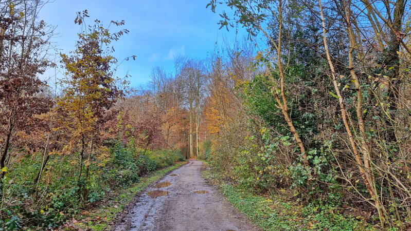 Während ich zwischendurch auch mal über einen kleinen Steg auf die andere Bachseite wechselte (was sich absolut lohnt!), zieht sich dieses sehenswerte Naturjuwel bis zum Castroper Hellweg hin. Der wird aber nur kurz gestreift, denn ein Wirtschaftsweg übernimmt rasch wieder und führt über eine aussichtsreiche Passage westwärts in den Gysenberger Wald hinein.