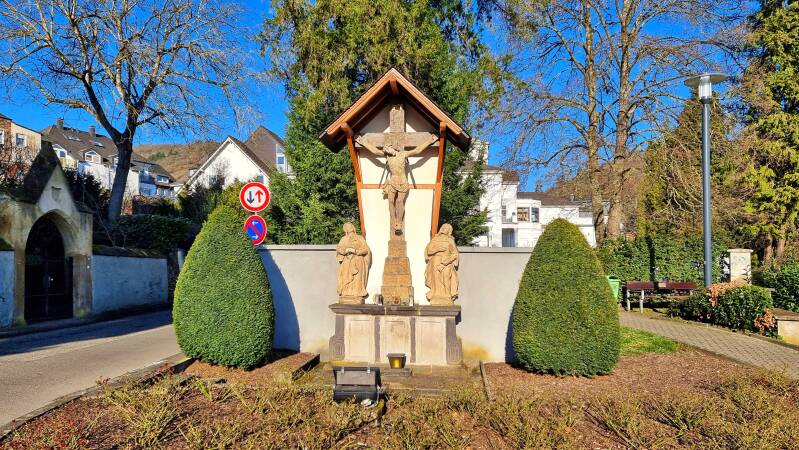 Der Übergang aus dem Wald in die Wohnbebauung von Brey vollzieht sich sehr plötzlich, der anschließende Wechsel in den Nachbarort Rhens dafür umso unauffälliger. Als Abschluss führen zahlreiche Treppenstufen in den Ortskern hinunter, wo das Durchschreiten des Viehtors die Etappe offiziell beendet. Und bis zum Bahnhof sind es von hier aus nur noch wenige Schritte.